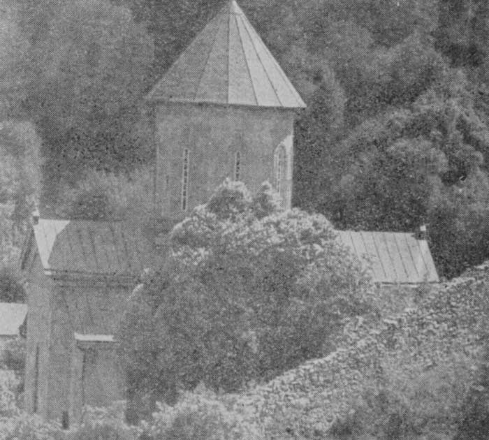 Залесенность большей части водораздела восточной трети Триалетского хребта, имеющего здесь высоту ниже 2000 м, создает трудности для ориентировки, тем более что линия хребта очень извилиста. Идем 10 км на восток от вершины 1909 м по сплошь лесному хребту с отдельными озерами вблизи водораздела, дающими исток притокам Тедзами и Алгети. Затем на север и восток 6 км по широкому травянистому гребню-пастбищу с лесным окаймлением по обе стороны до каменистой вершины 2081 м с пастушьим кошем на ее северном склоне. Эта вершина уже тупиковая, ибо Триалетский хребет поворачивает отсюда круто на юг и через 4 км выводит к травянистой вершине 1948 м, которая является началом травянистой дуги. Местное название этого участка Триалетского хребта — Карталиния. Длина Карталинии по проселочной дороге, тянущейся прямо по водоразделу над травянистым склоном с юга и лесным с севера, — 16 км, в том числе до вершины 1862 м — 10 км, до вершины 1893 м — 3 км и до узловой травянистой вершины 1648 м — 3 км.