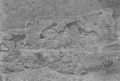 | Лев, задирающий осла. Каменная резьба под карнизом юго-восточного угла средневековой церкви Богородицы в сел. Вале. 7.VIII.1976 г. |