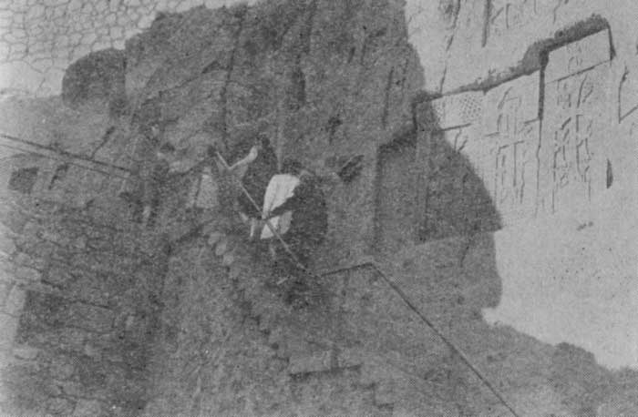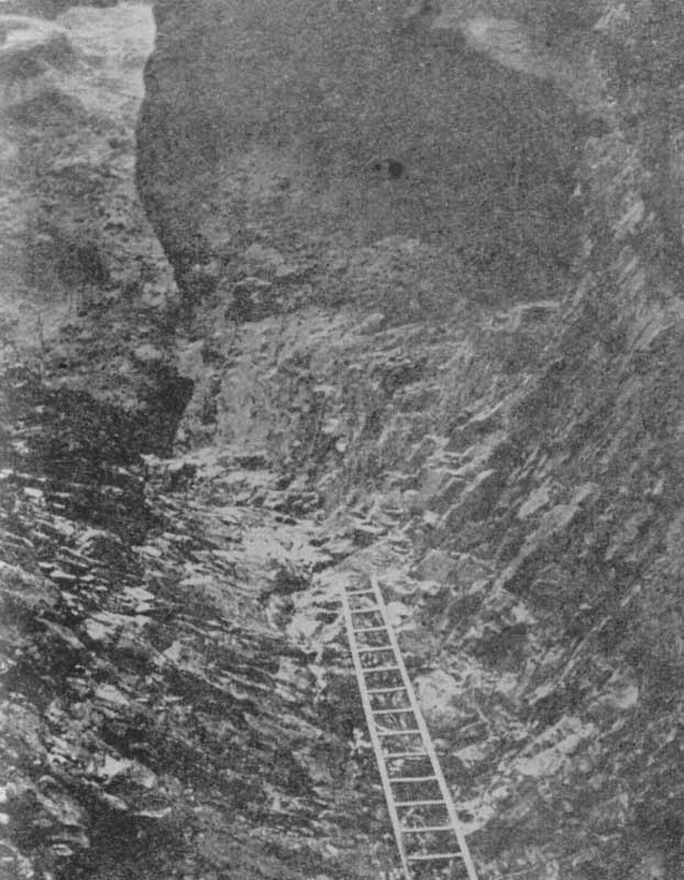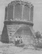 В 3 км южнее седловины Биченекского перевала другой перевал — Гемюр (ок. 2340 м), через который в средневековье проходила КТ и СПТ. Убедительное свидетельство существования здесь такой тропы — высеченные в туфобрекчиевых останцах три сообщающихся укрытия для людей на случай непогоды. Мне удалось найти эти убежища на западном склоне перевала, и я выношу благодарность за помощь в их поиске чабанам урочища Батыбаты Рашиду Мусаеву и Латифу Талыйову, а также братьям Али и Исмаилу Алиевым из Нахичеваня.